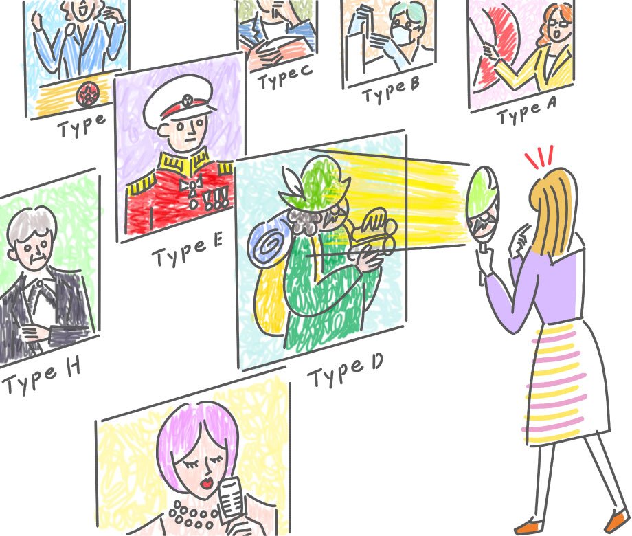 「管理者タイプ」「主人公タイプ」「冒険家タイプ」「仲介者タイプ」「エンターテイナータイプ」「巨匠タイプ」など、細かい性格タイプに分類されるので、