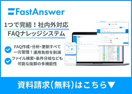 運用しやすいナレッジベースを構築したいや、分析・改善までを見据えてシステムを選びたい場合は、「FastAnswer」の導入を検討してみてはいかがでしょうか。