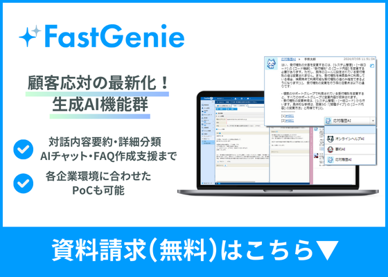 リアルタイム対話要約、回答支援、FAQ作成支援、VOC抽出ができる生成AI機能群は「FastGenie」