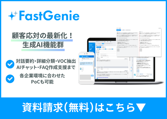 この記事では、対話型AIの基本構造と関連技術の関係性、導入のメリットのほか、カスタマーサービス領域での活用例、導入成功のポイント、テクマトリックスが提供する「FastSeries」のCRMシステムやFAQシステムなどと連携できる生成AI機能群「FastGenie」の特徴を、わかりやすく解説します。