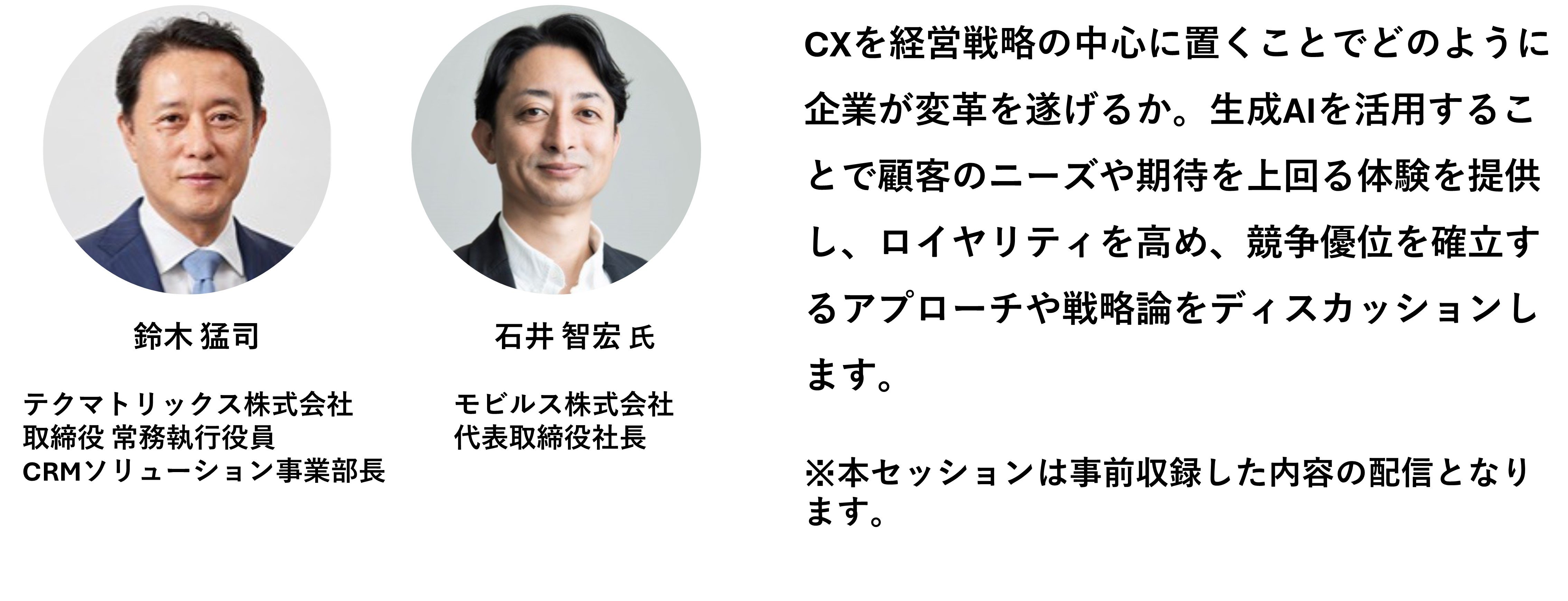 | プログラム | 13:00-13:25 CXを武器にしたビジネス変革と生成AIの真価 |