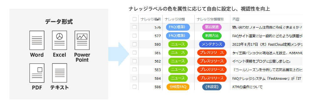 FastAnswerとFastHelpは、マスタ情報、製品・FAQ情報、権限設定などを共通のデータベースで一元管理できるので、過去の問合わせ情報を簡単にナレッジの一部として活用できます。