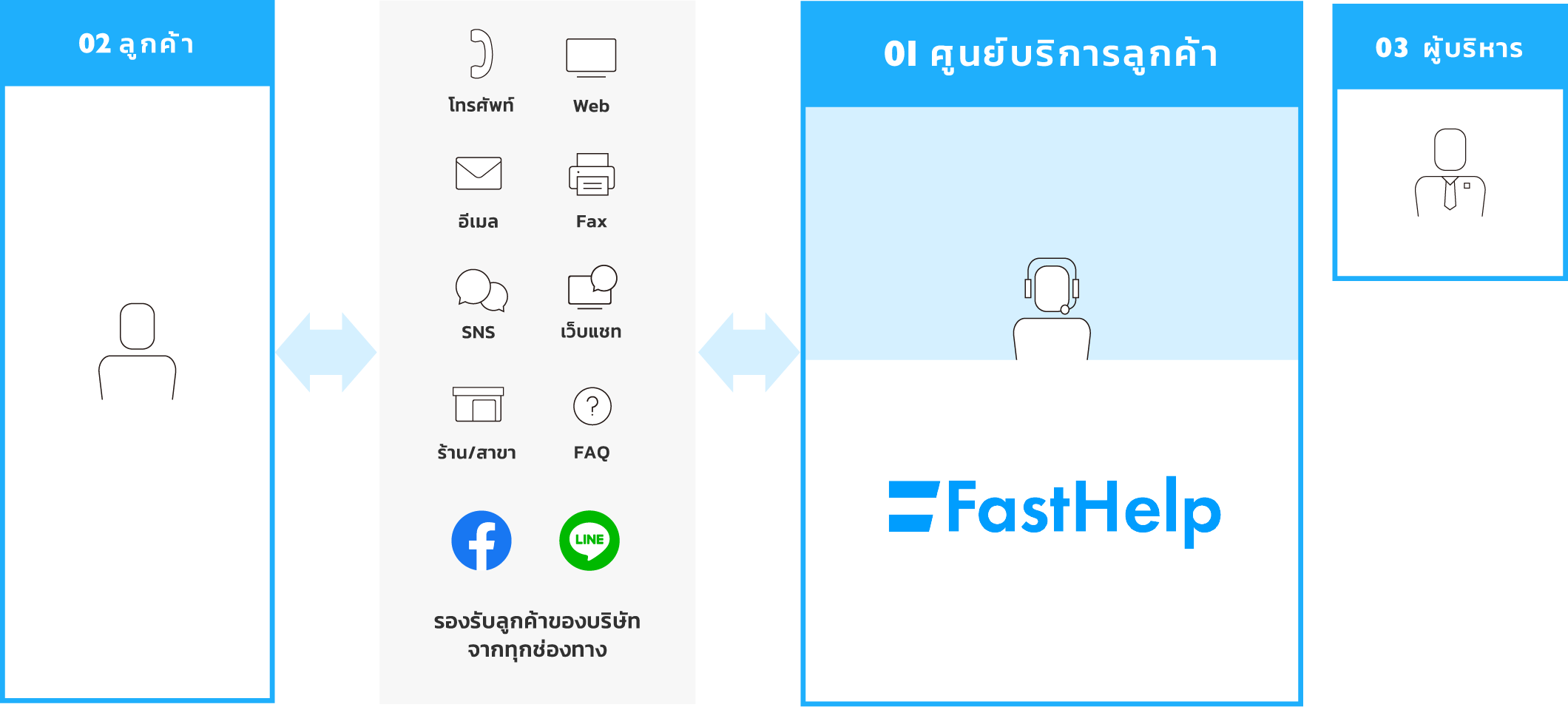 การเพิ่มช่องทางการติดต่อ SNS (LINE, Facebook) ในศูนย์บริการลูกค้าของคุณ ช่วยให้บริษัทของคุณสามารถให้การสนับสนุนลูกค้าได้ทุกช่องทาง ข้อดีคือสามารถจัดการช่องทางการสอบถามได้อย่างมีประสิทธิภาพตลอดจนสามารถรวบรวมเสียงของลูกค้าที่ใช้งานได้จริงได้จากทุกช่องทาง